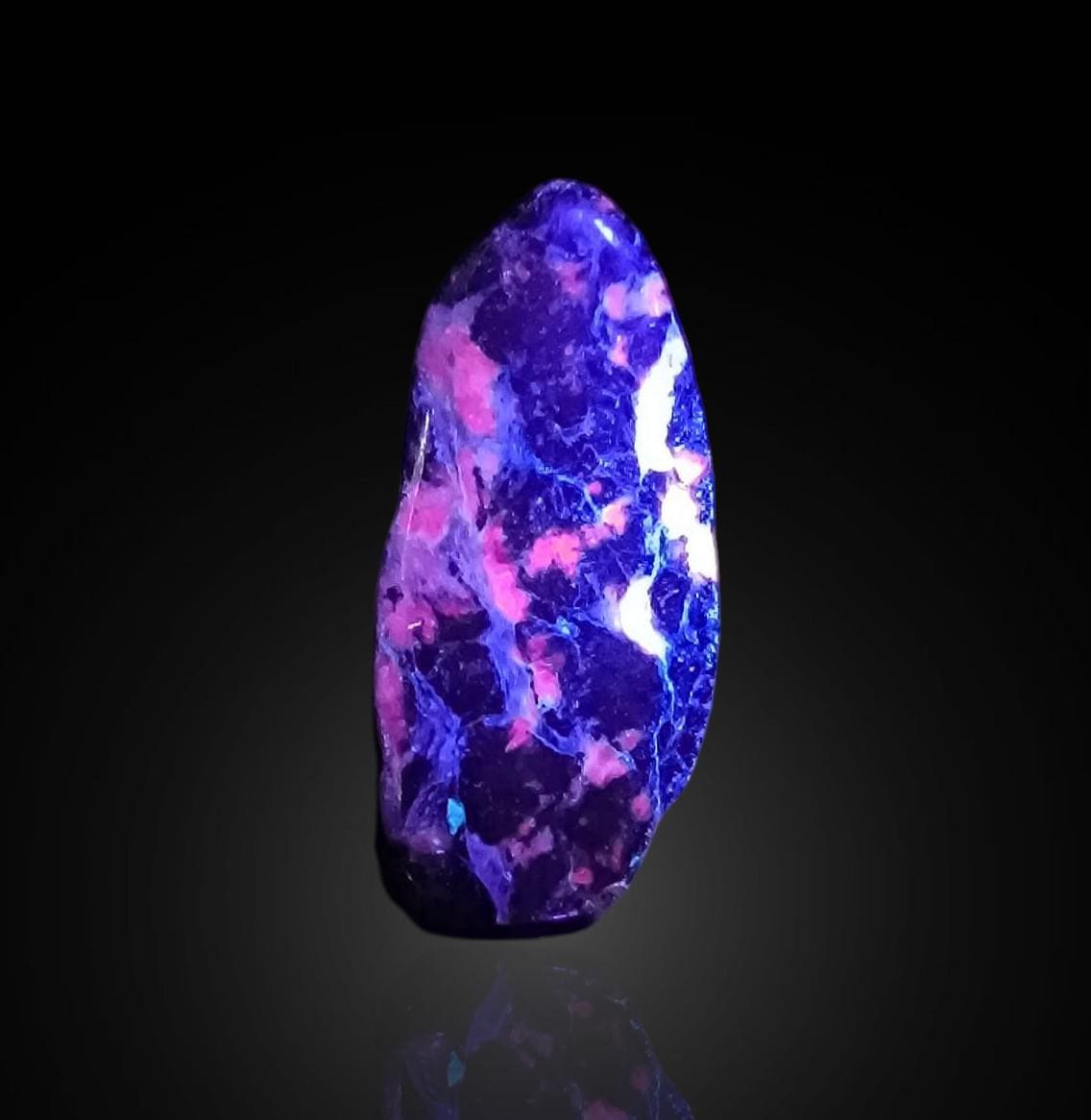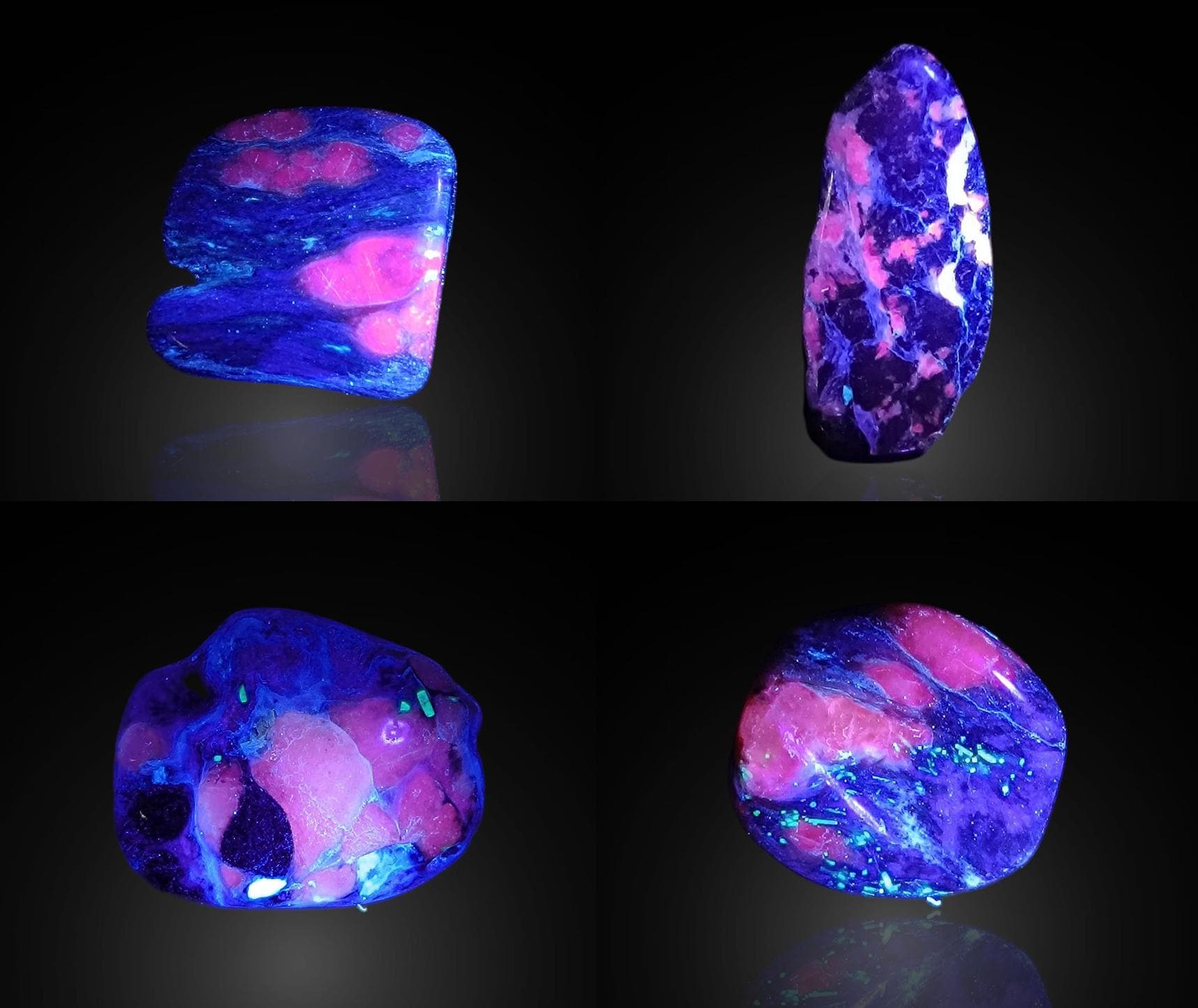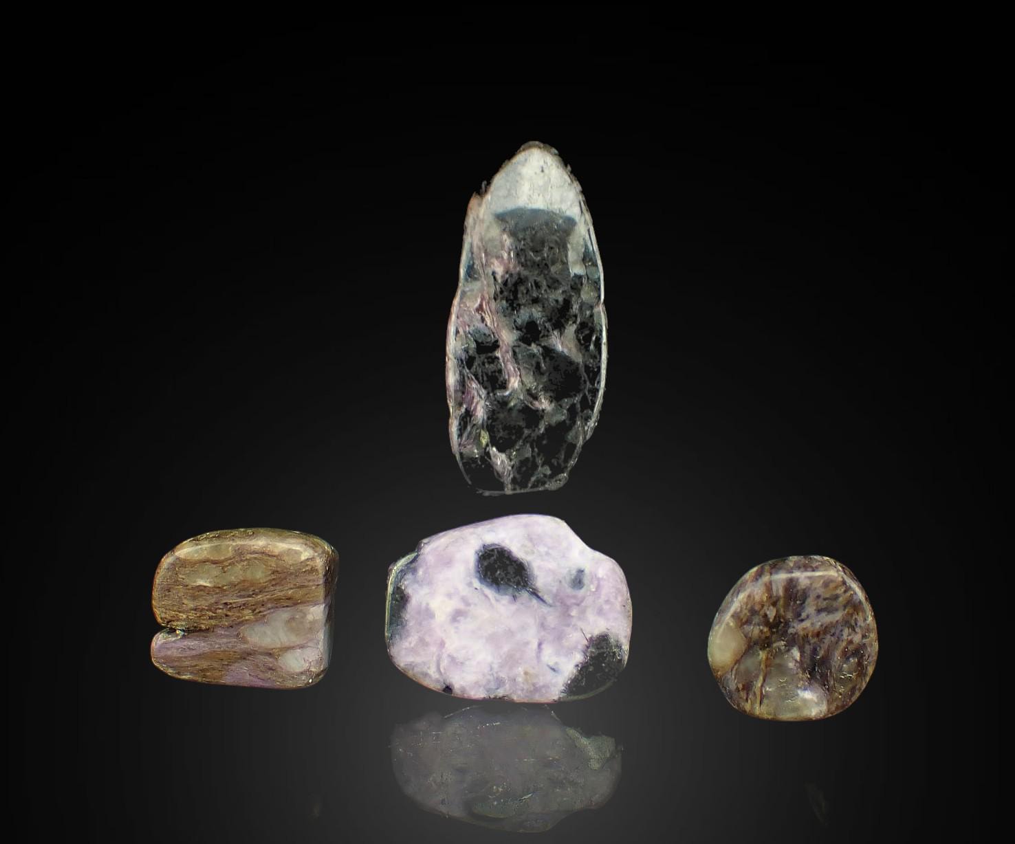 Charoite with UV Calcite - 4 polished pieces fluorescent in long waves