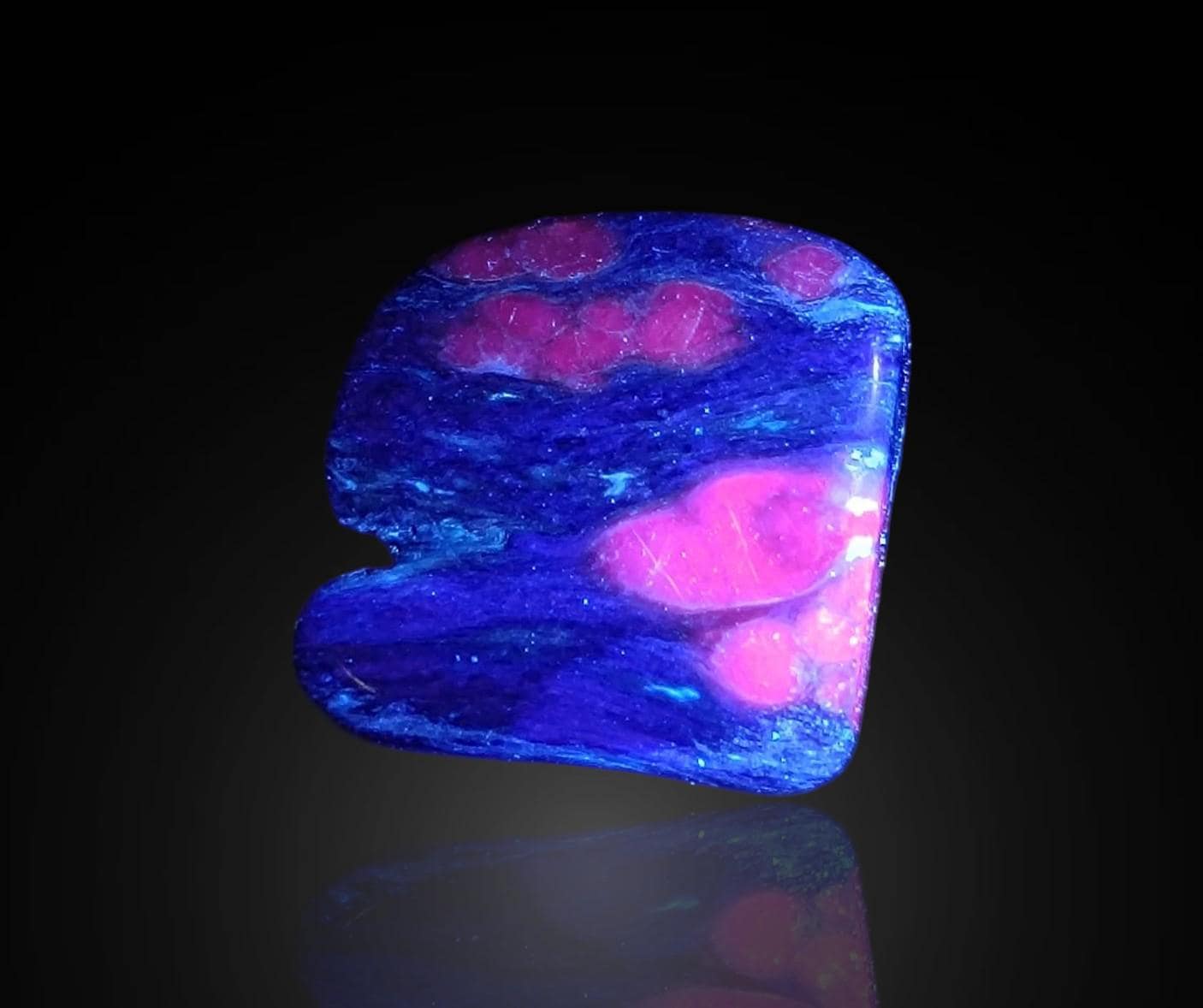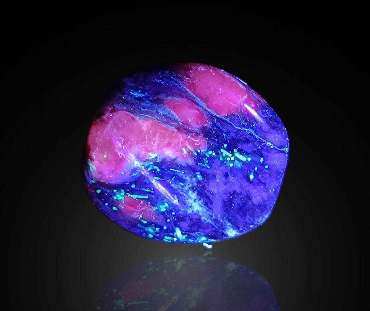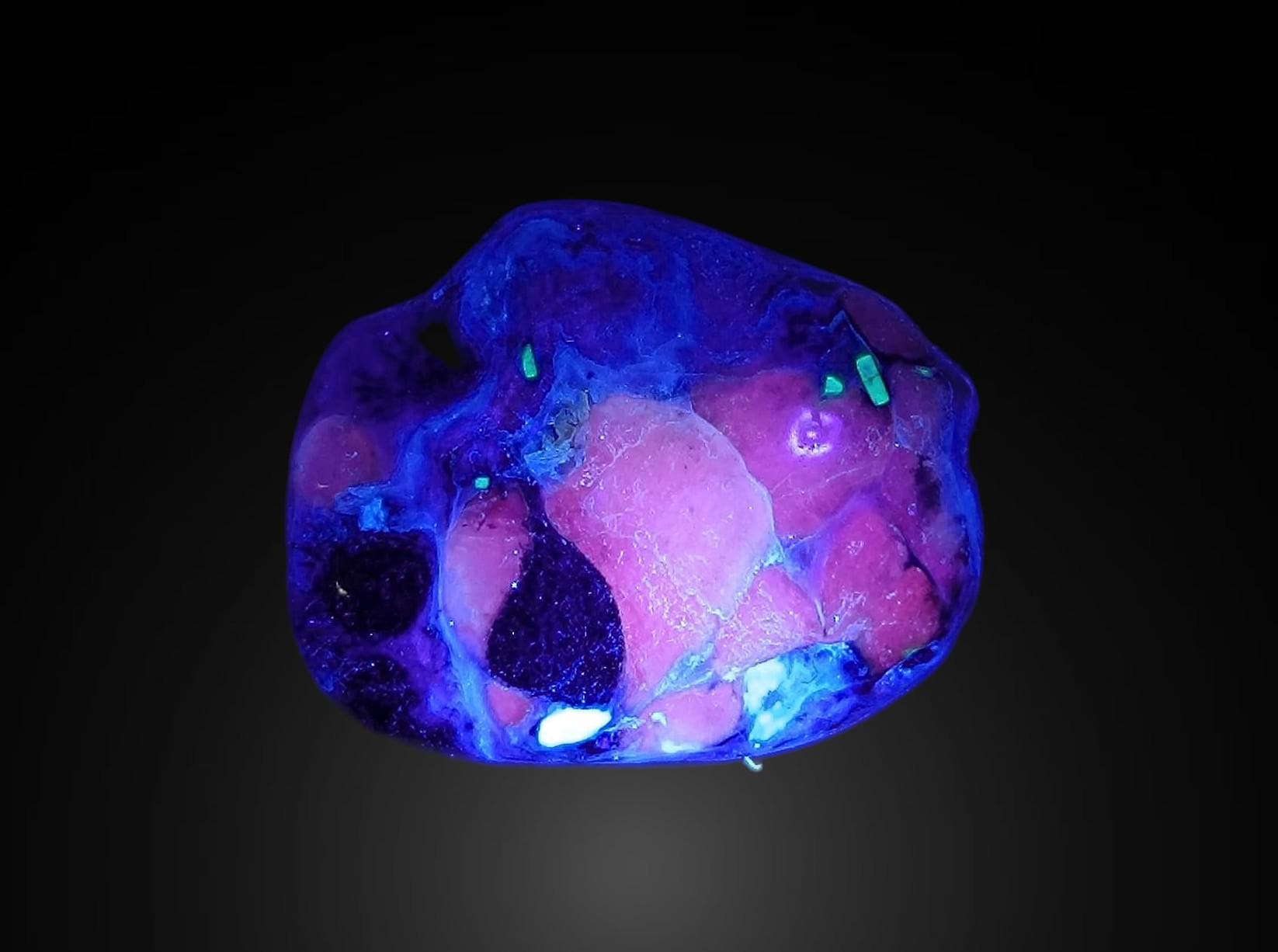 Charoite with UV Calcite - 4 polished pieces fluorescent in long waves