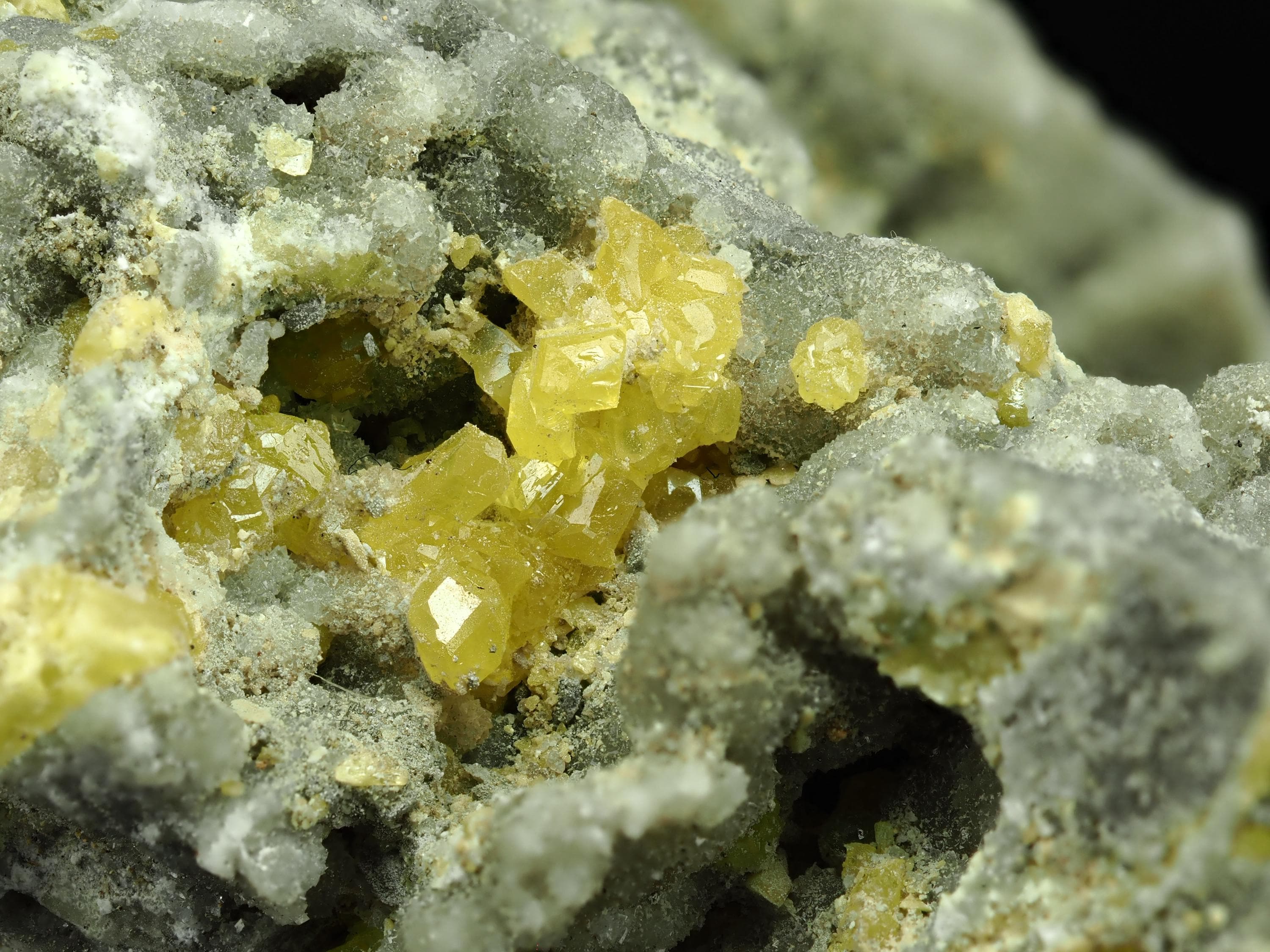 SULPHUR, CALCITE - fluorescent in long wavesMachów, PolandSize - 5,0 x 4,0 x 2,7 cmWeight - 57 g