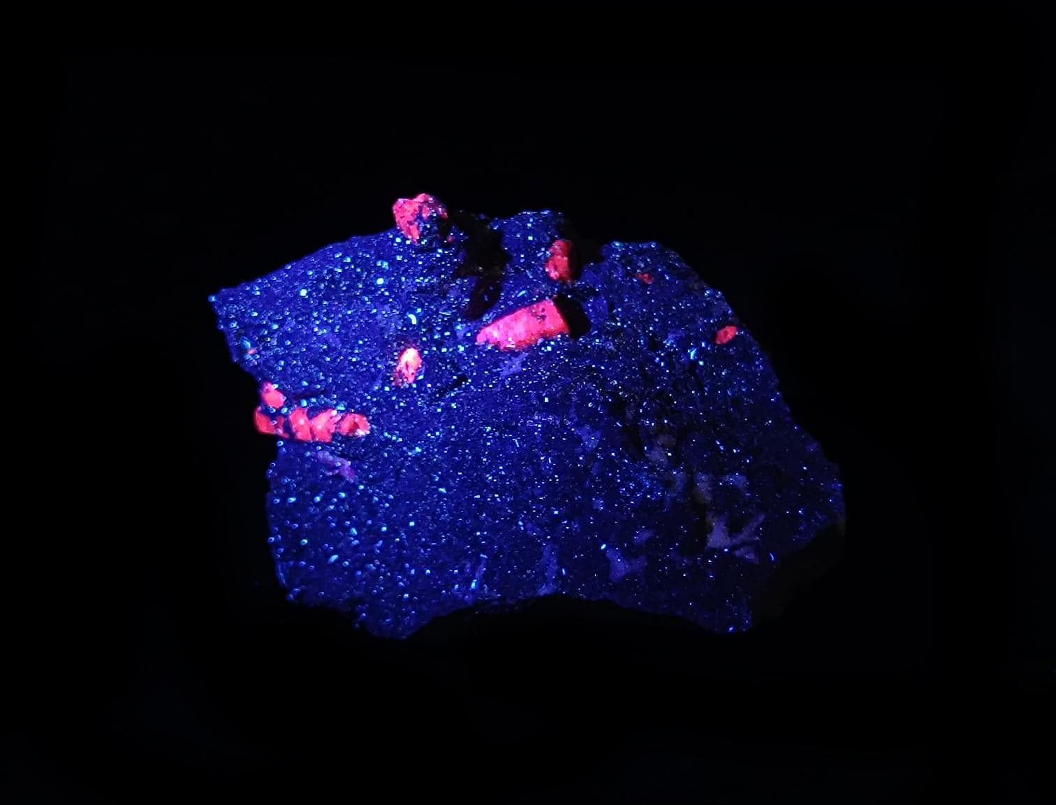 Hyalite - Mexico(SW), Apatite - Pakistan(LW), Fluorite - Mexico(LW), Ruby - Austria(LW)