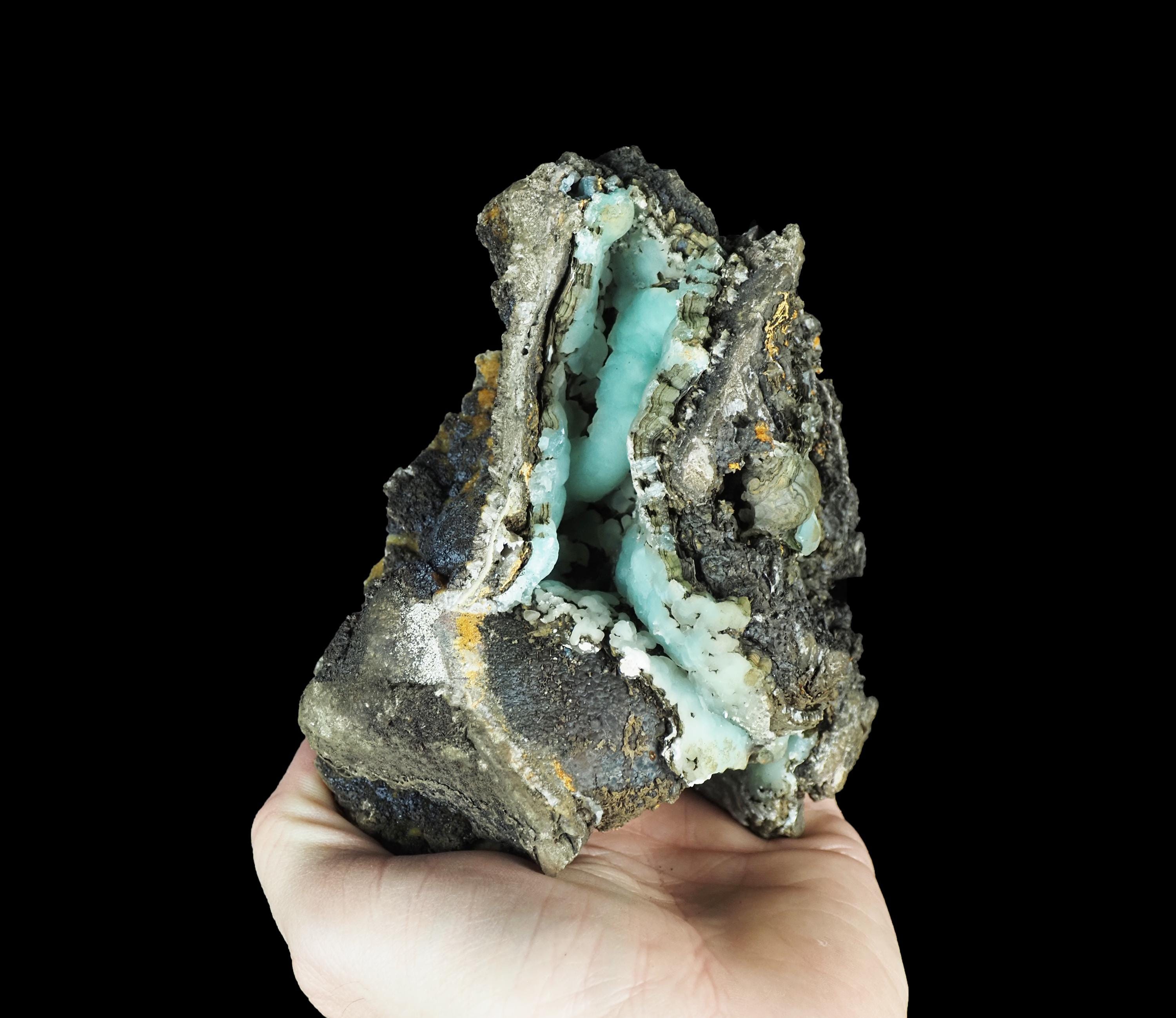 SMITHSONITE - Fluorescent crystals - 395nmSan Antonio mine, Mexico13,5 x 10,5 x 7,5 cm Weight - 792 g