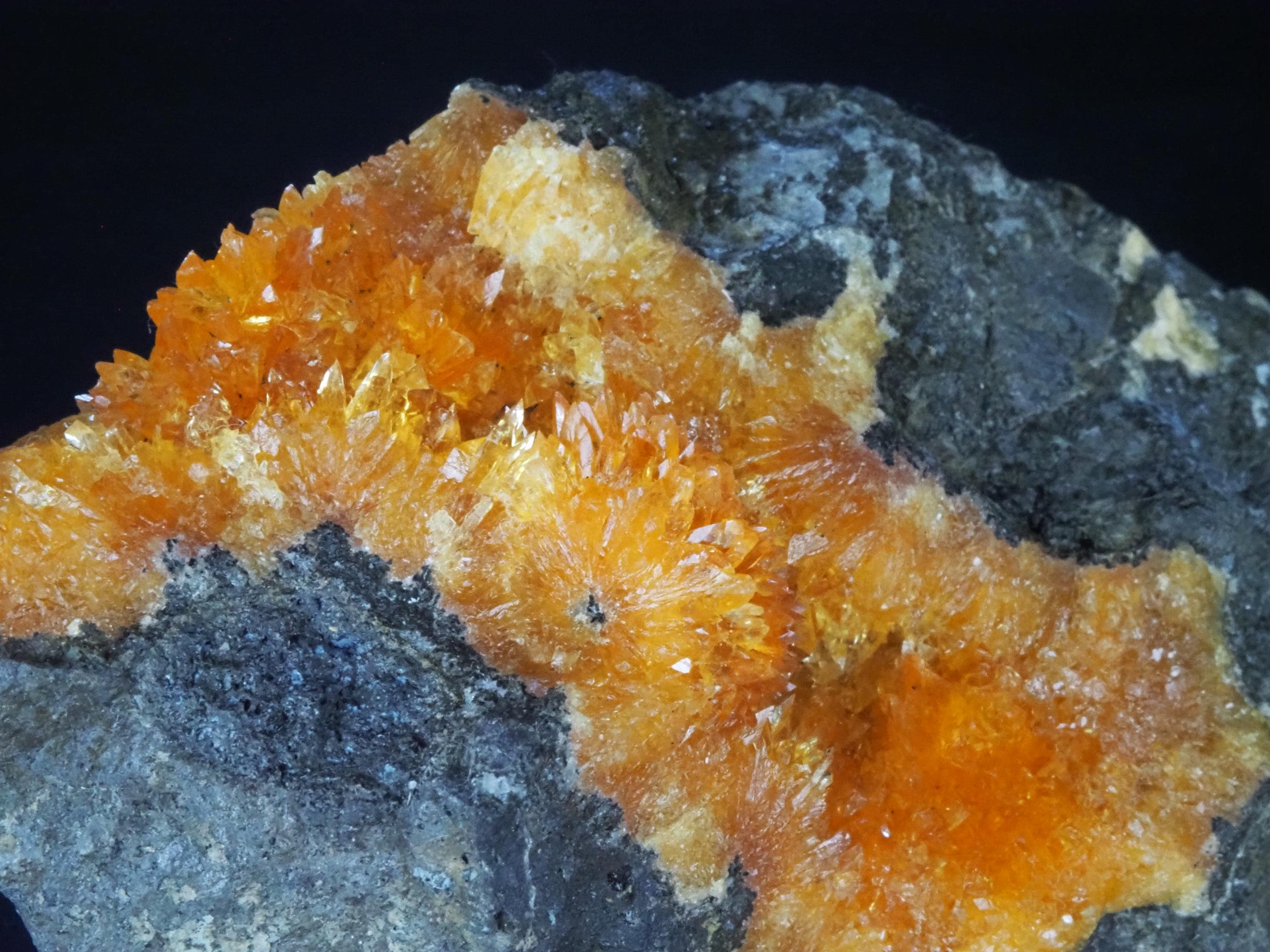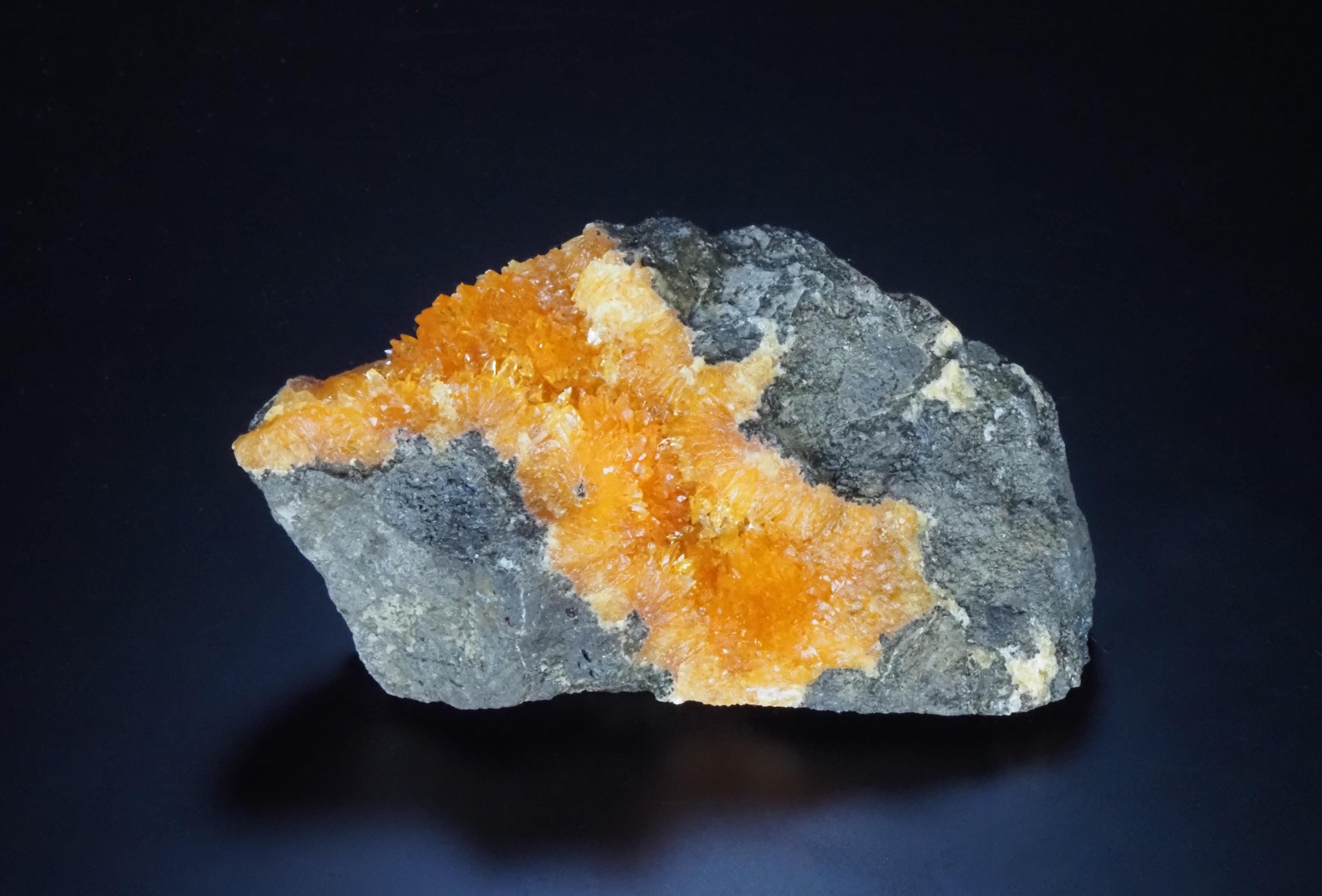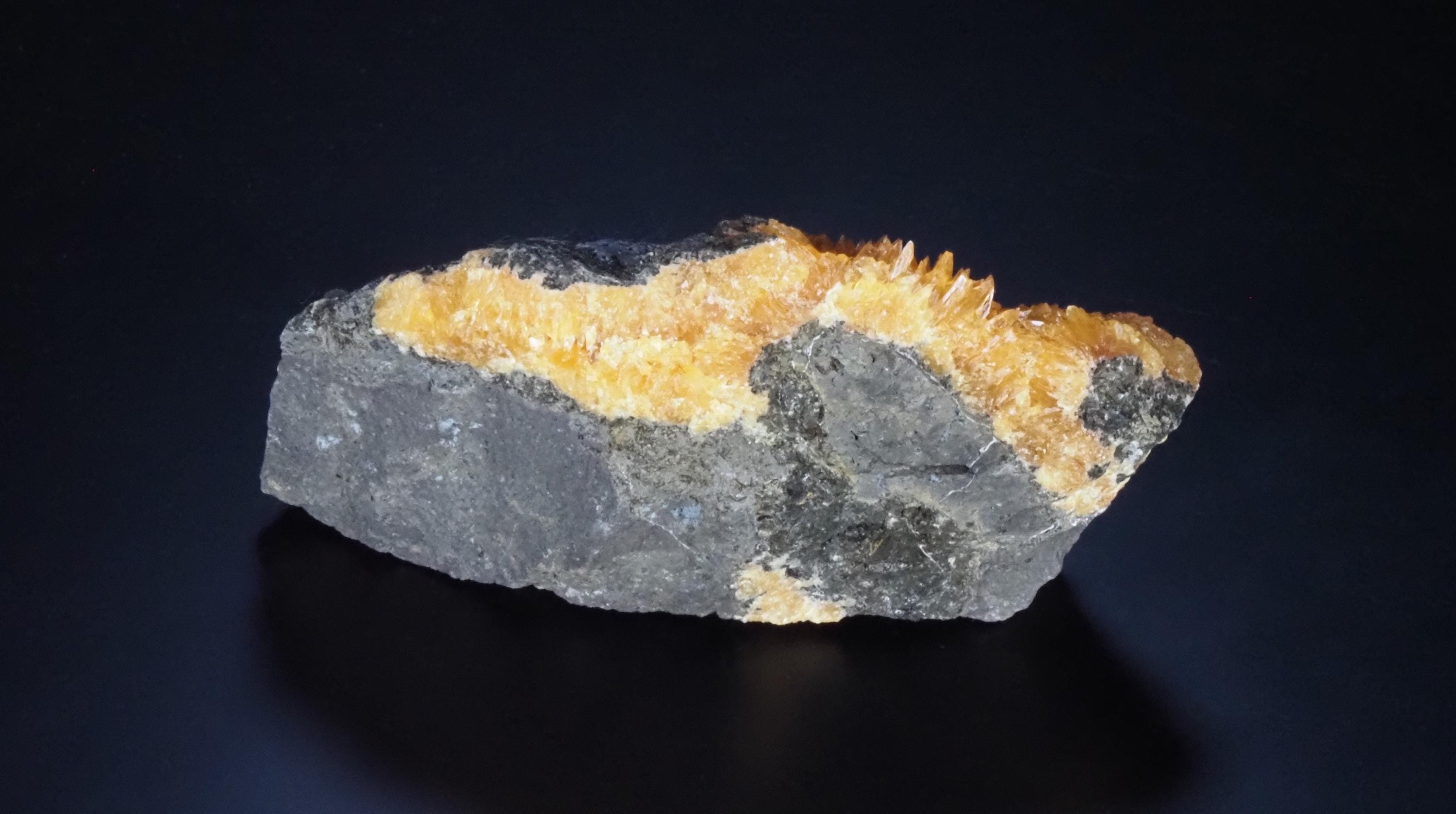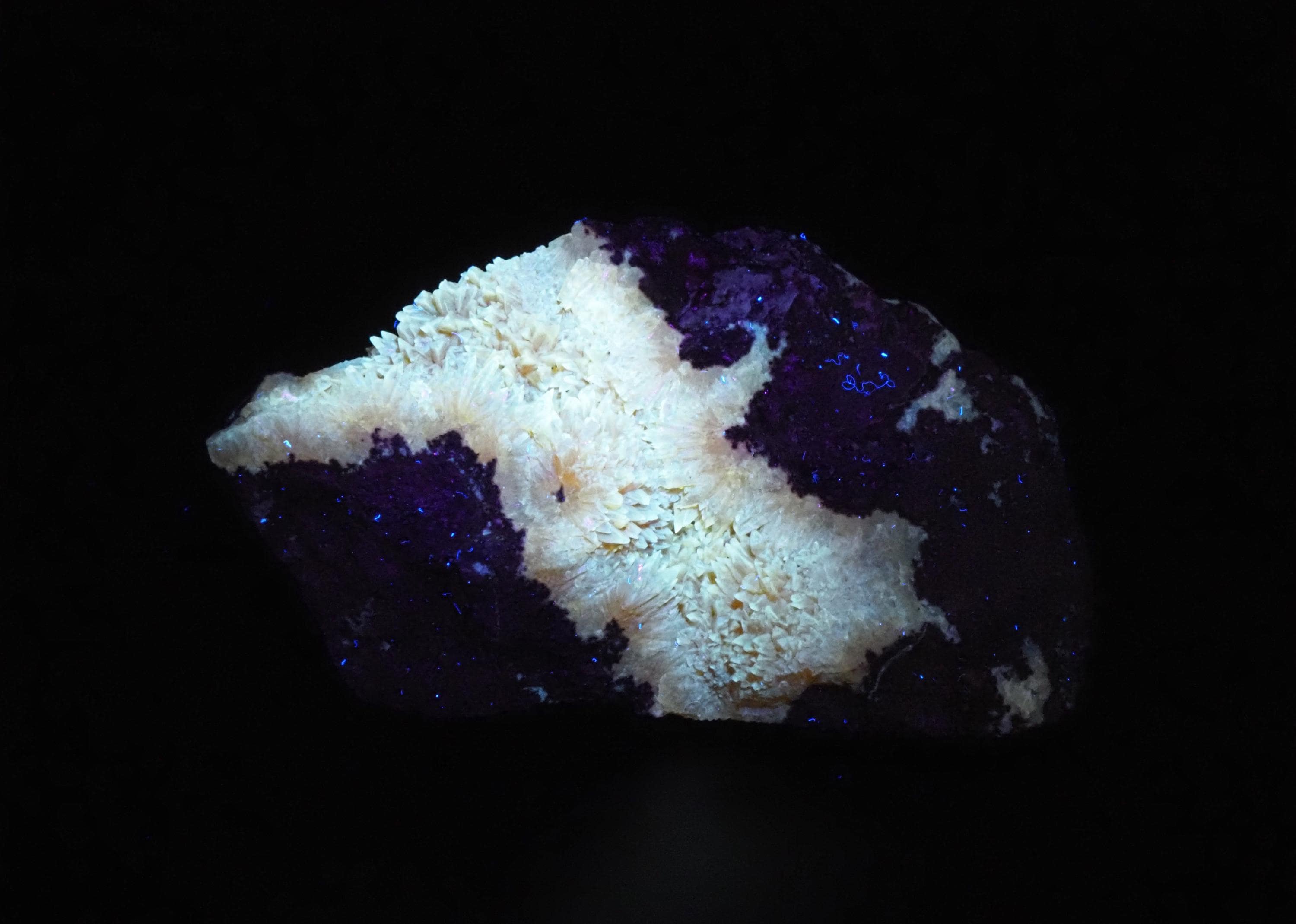 CALCITE - fluorescent in long wavesBasalt Quarry, Grabiszyce, PolandSize - 7,8 x 3,5 x 3,0 cmWeight - 94 g