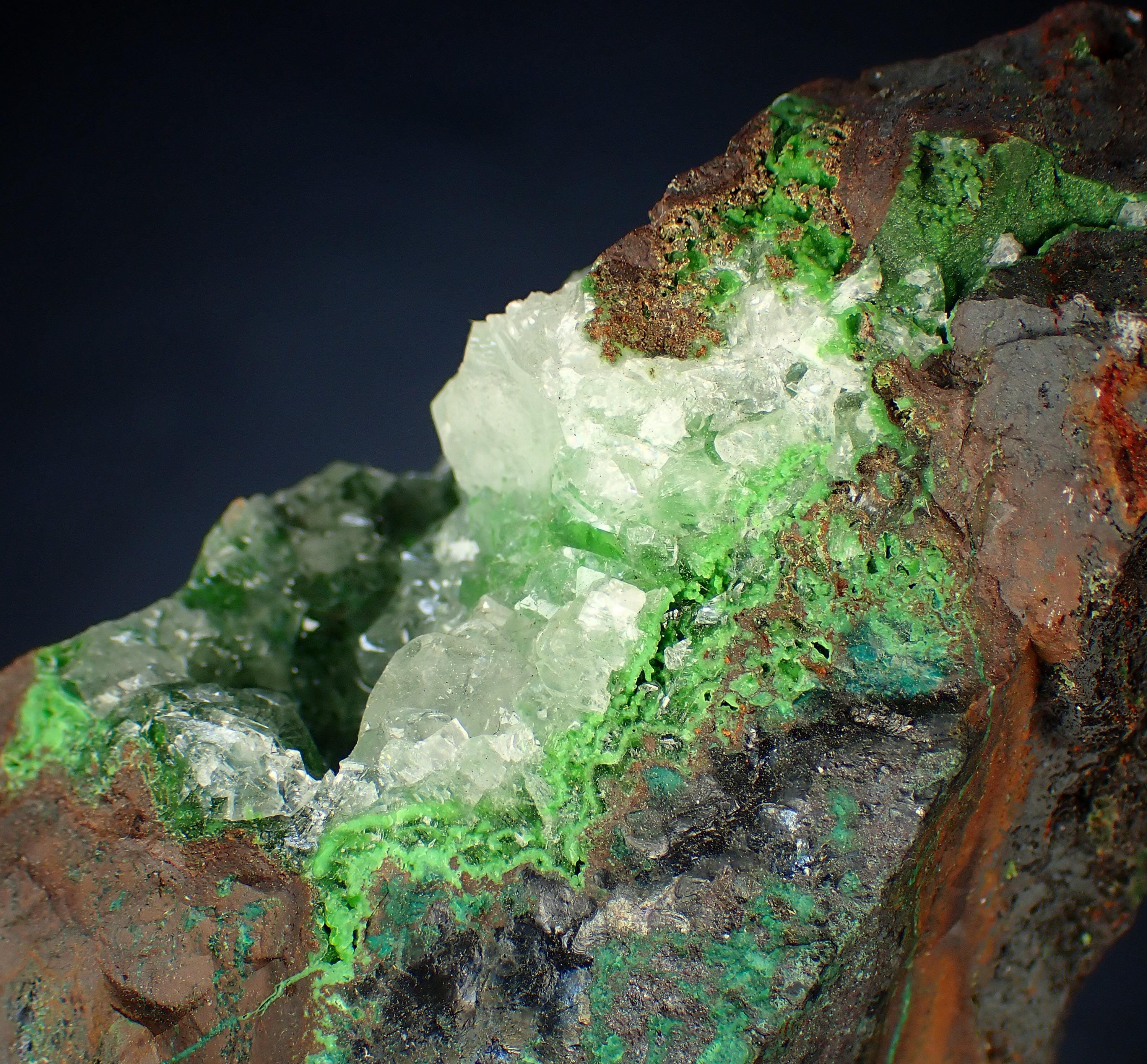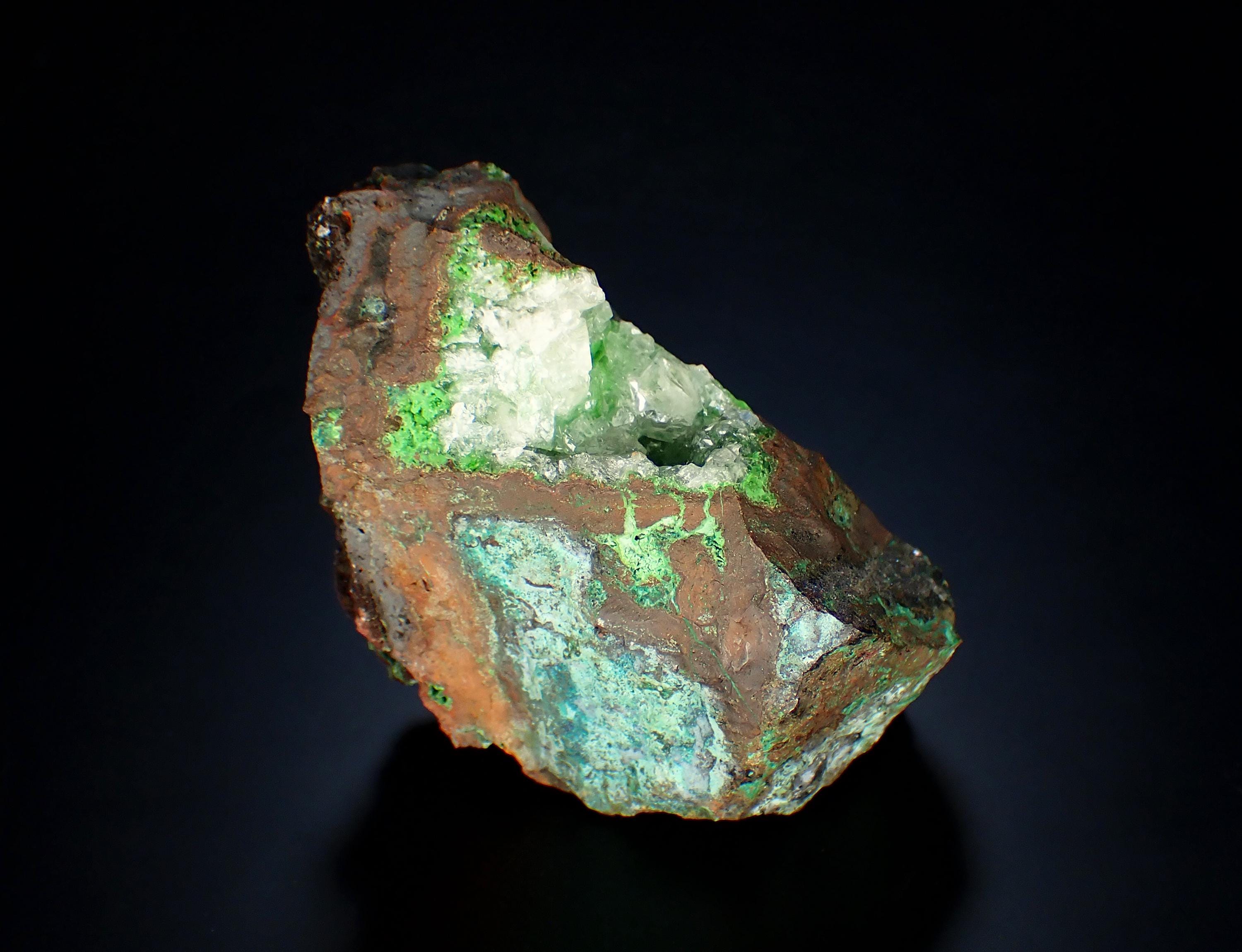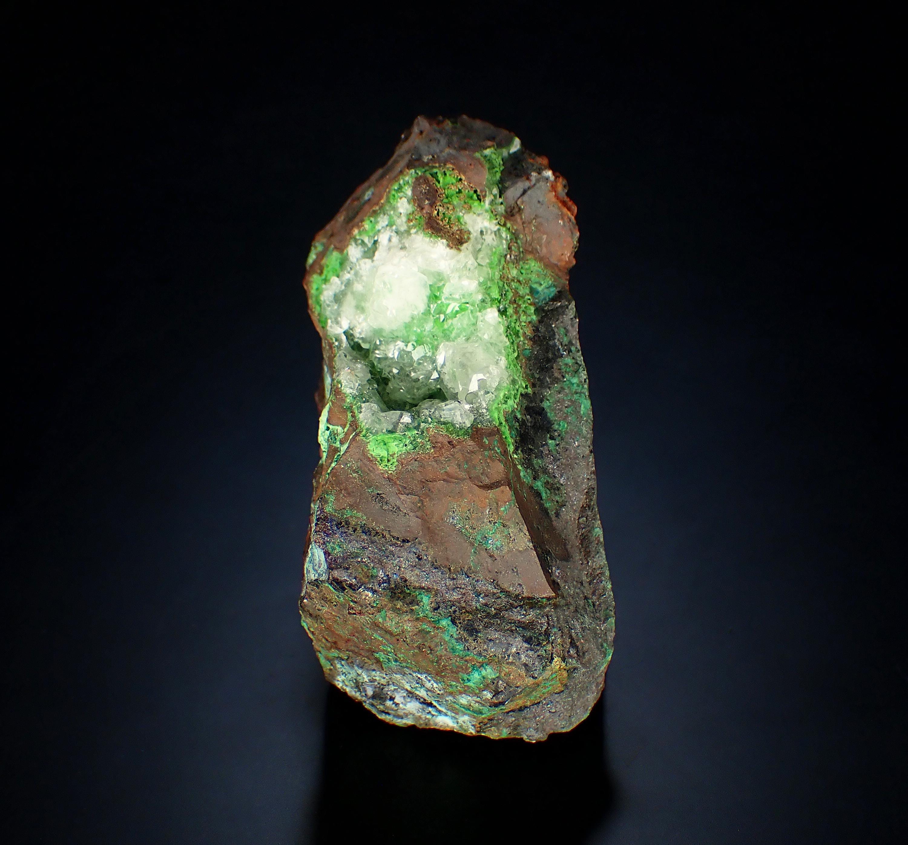 CONICHALCITE, CALCITEOjuela mine, Durango, Mapimi, MexicoSize - 7,2 x 4,5 x 3,2 cm Weight - 216 g