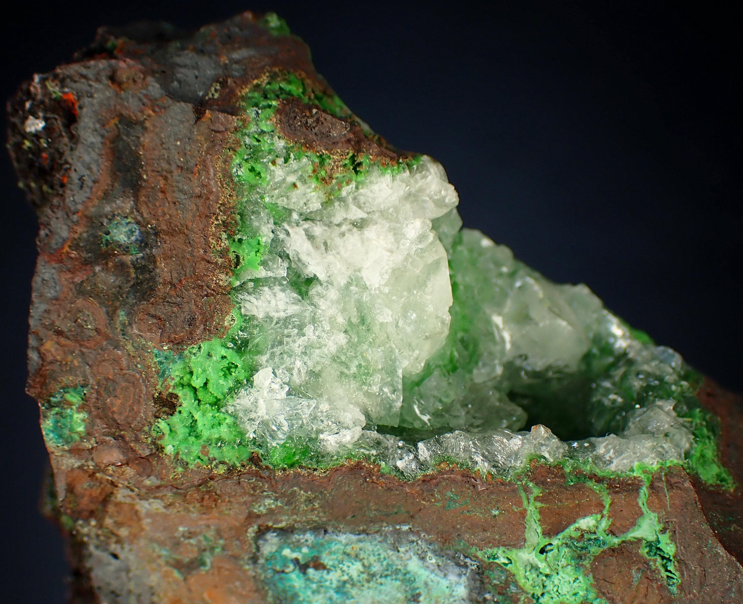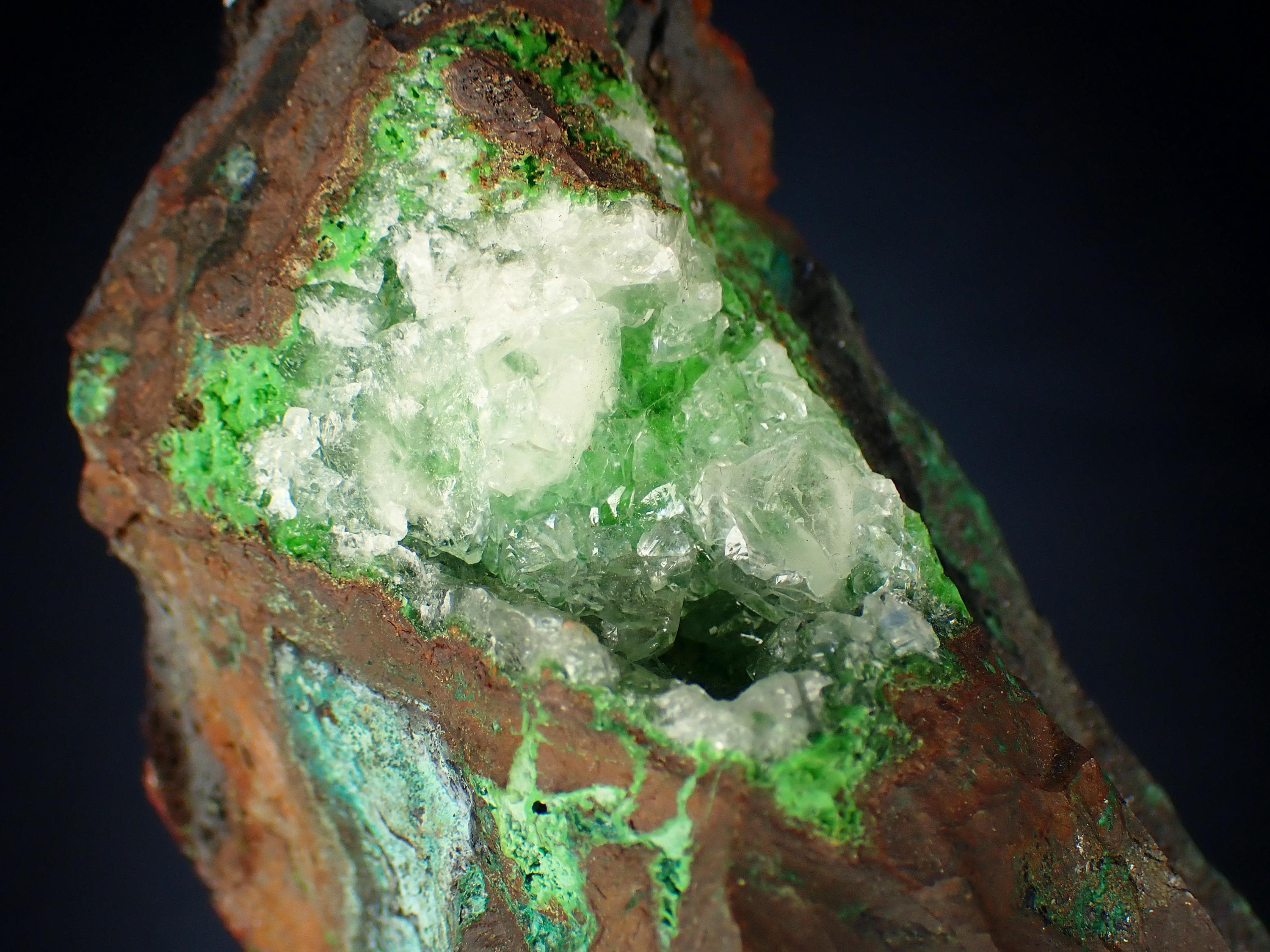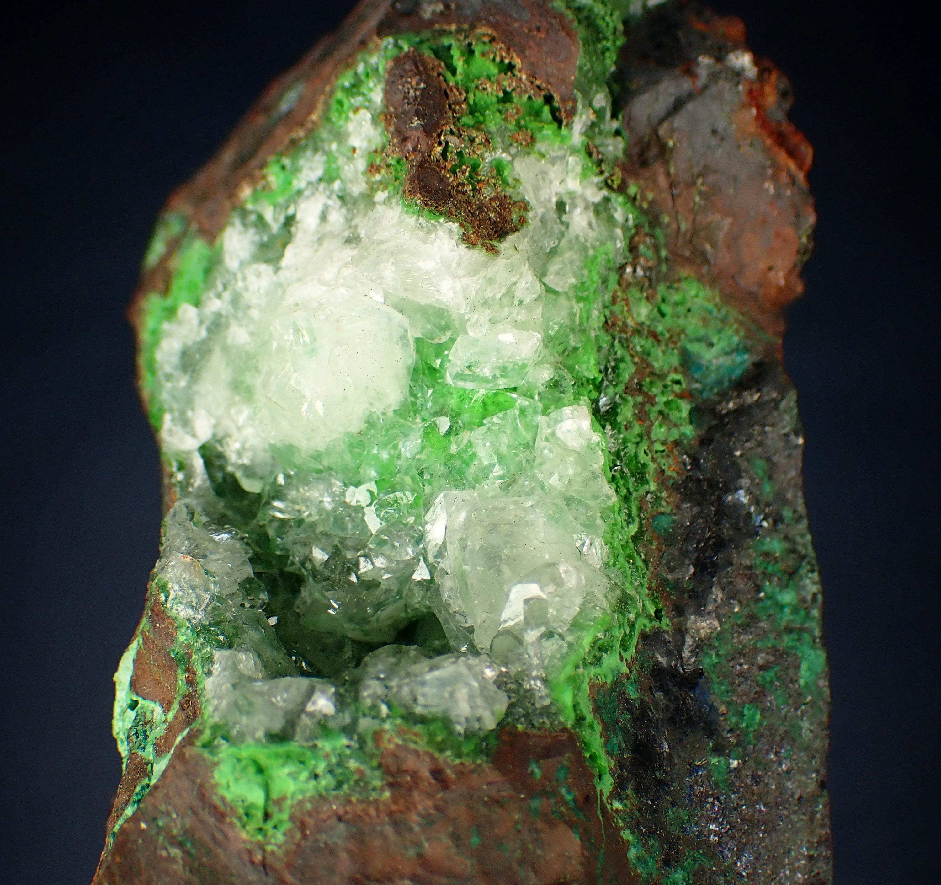 CONICHALCITE, CALCITEOjuela mine, Durango, Mapimi, MexicoSize - 7,2 x 4,5 x 3,2 cm Weight - 216 g